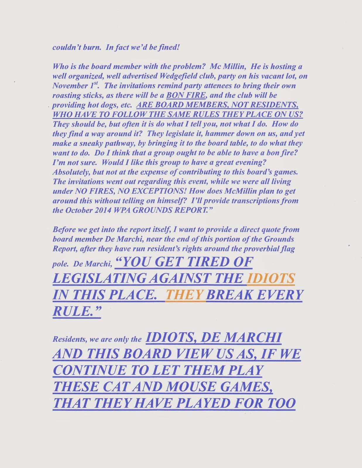 Hold President Jacky Walton responsible. As president, he appoints committee chairs. He appointed Garrison, Legal Chair, knowing Garrison's actions. Hold Compliance Chair DeMarchi responsible after you listen to tapes of all the meetings. Note that after DeMarchi was a committee of one for months, that he adds known Concerned Citizens to his committee. He is often Garrison's back up in making life miserable for anyone who questions at the board table. Hold your entire board, minus one, responsible for voting these people onto these two committees. Hold those same board members responsible for allowing Garrison to seek legal opinion, without getting it in writing.